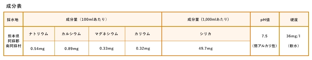 ます。地下約100mの水源からくみあげた天然水はバランス良くミネラルが含まれ口当たりも柔らかい軟水です。